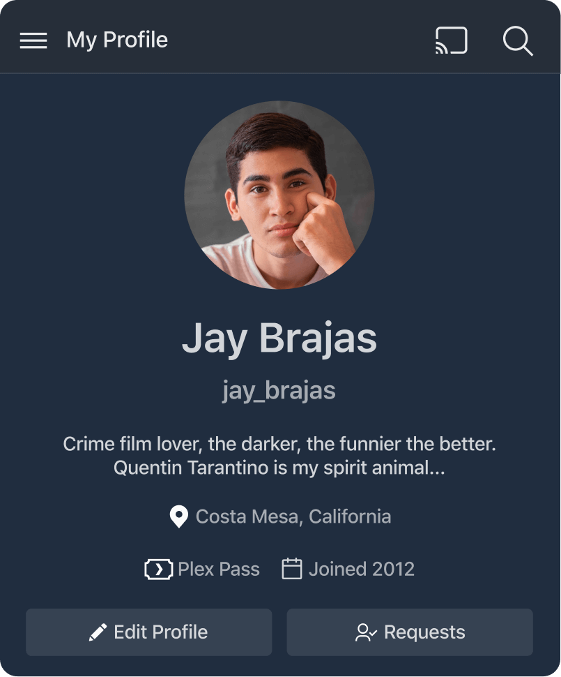 See what films and shows your favorite actors are in (and add them to your Watchlist) without ever leaving Plex! With Discover Credits, itās all united into a single page, including which of their titles are available in your personal media libraries, on demand, or elsewhere via Discover.